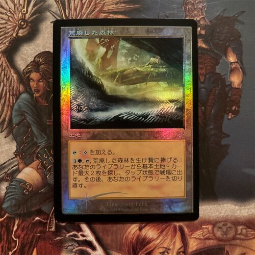 土地(T):(◇)を加える。(3)(緑),(T),荒廃した森林を生け贄に捧げる:あなたのライブラリーから基本土地カードを最大2枚探し、それらをタップ状態で戦場に出す。その後ライブラリーを切り直す。 爆発的植生/Explosive Vegetation内蔵ランド ただしこれ自…